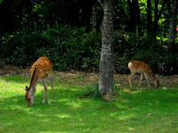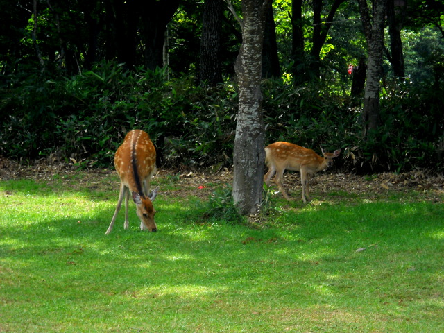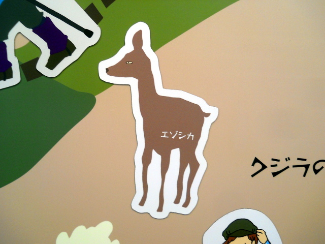 駐車場近くの草地では、エゾシカの親子の姿も間近で観られました(*゜0゜) 夢中で草をはみながらも、親鹿はしっかりと周囲を警戒しており、時折、子鹿の方も頭をあげて興味深そうにこちらを見つめておりました(*^ - ^*) 知床自然センターの中に入ると、ちょっとシニカルな表情のエゾシカさんのイラストが目を惹きました(^^) その15へつづく・・・アトリエ☆イボヤギ 木村大介 一昨年(2017年)の春頃より多忙な状況が重なってしまい、ブログの更新が大幅に遅れた状態が続いておりますが、日付順に少しずつ更新をさせていただいておりますので、引き続きご高覧いただければ幸いに存じます・・・(*´-`) *尚、様々な訪問記の連載が続いておりますために、実際の日付と投稿の内容にもだいぶ時間の開きが生じてしまい、お見苦しい点も多々ございますが、何卒よろしくお願い申し上げます。。!