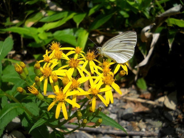 2018年の8月19日(日)~22日(水)に訪れた、北海道東部の旅行記・その14をお届けさせていただきます・・・ウトロの宿を出て知床自然センターに向かいました。センターの周りの明るい森を散策すると、たわわに成ったヤマブドウの実や、キオンの鮮やかな黄色い花を訪れるシロチョウの仲間、ウメノキゴケの1種などが観られました。・°・。