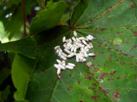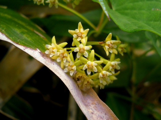 別の朽ち木には、鮮やかな朱赤色をした円盤状のキノコが生えていて、円盤の縁には細かい毛が生えておりました。・°・。つる植物の葉の上では、米粒大の白く小さなマユ?がたくさん貼り付いておりました。・°・。別のつる植物には、薄緑色をした小さな花が集まって咲いておりました。・°・。その16へつづく・・・アトリエ☆イボヤギ 木村大介 一昨年(2017年)の春頃より多忙な状況が重なってしまい、ブログの更新が大幅に遅れた状態が続いておりますが、日付順に少しずつ更新をさせていただいておりますので、引き続きご高覧いただければ幸いに存じます・・・(*´-`) *尚、様々な訪問記の連載が続いておりますために、実際の日付と投稿の内容にもだいぶ時間の開きが生じてしまい、お見苦しい点も多々ございますが、何卒よろしくお願い申し上げます。。!