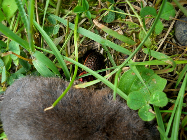 2018年の8月19日(日)~22日(水)に訪れた、北海道東部の旅行記・その16をお届けさせていただきます・・・フレペの滝へ続く散策路では、石の上にとまっているコエゾゼミさんと出会いました。和名に蝦夷(えぞ)と付いておりますが、本州でも標高の高いところで観られる北方系の種とのことでした。・°・。道の脇の草の上で食虫類の仲間の亡き骸を見つけました(*゜0゜)かがんでよく観たら、腹部の辺りにきれいなオサムシさんがいることに気が付きました。死肉のごちそうをいただきに訪れていたのかもしれません。後で調べてセアカオサムシさんという種類だと分かりました。北海道では平地でも見られるが、全国的には河川敷の草地など局地的な分布で、絶滅危惧種に指定されている地域も多いようです。・°・。*