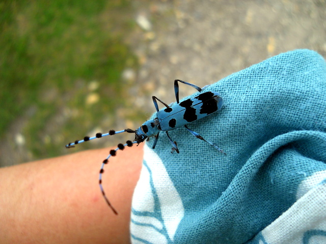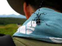 フレペの滝を後にして再び遊歩道を歩いていると、カミキリムシが首筋にとまっていることを友人が教えてくれました(*゜0゜) 首に巻いていた手拭いをそっと外すと、それは美しい色をしたルリボシカミキリさんでした。。そう言えばその体色が手拭いの色合いと少し似ているなと思い、もしかしたら配偶者と間違えたのかな?と思ひました(*^ - ^*)。・°・。草原地帯ではアザミの仲間も咲いておりました。・°・。その18へつづく・・・アトリエ☆イボヤギ 木村大介 一昨年(2017年)の春頃より多忙な状況が重なってしまい、ブログの更新が大幅に遅れた状態が続いておりますが、日付順に少しずつ更新をさせていただいておりますので、引き続きご高覧いただければ幸いに存じます・・・(*´-`) *尚、様々な訪問記の連載が続いておりますために、実際の日付と投稿の内容にもだいぶ時間の開きが生じてしまい、お見苦しい点も多々ございますが、何卒よろしくお願い申し上げます。。!