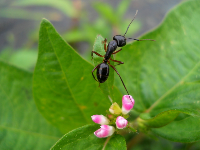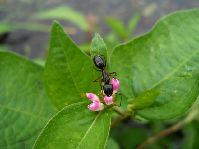2018年5月26日に訪れた『春の湧水路散策記・その2』をお届けさせていただきます・・・まだ開花期にはだいぶ早いミゾソバの花には、大きなアリさんが訪れておりました。・°・。開きかけたミゾソバの花を見つけると、いったん離れて、葉の高いところに上がって周囲を見回してから、安心したように再び花に戻って蜜をなめて?おりました(^^)。・°・。その3へつづく・・・2018/09/04(火) アトリエ☆イボヤギ 木村大介 *この記事の前には2018/09/03(月)分の記事も投稿してございますので、合わせてご覧いただければ幸いです(^-'*)