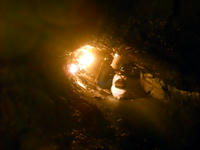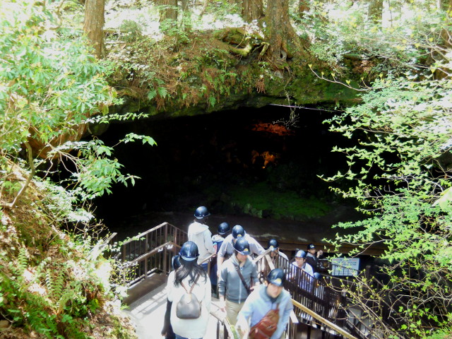 今年の4月30日から5月2日にかけて訪れた「甲斐のくに訪問記・その7」をお届けさせていただきます・・・本栖湖を後にして、鳴沢氷穴に向かいました。氷穴は富士山の溶岩が流れ去った跡に出来た、総延長150メートル、最深部は地底21メートル(地下7階に相当!)の洞窟です。平均気温は約3℃とのことで、夏でも氷が残っている冷涼な空間です。・°・。受付でヘルメットを渡されて、さっそく地底世界へと向かいました(^-^ゞ ぽっかりと空いた大きな入り口を降り始めると、穴の奥の方から冷たい空気が漂って参りました。。(*゜0゜)