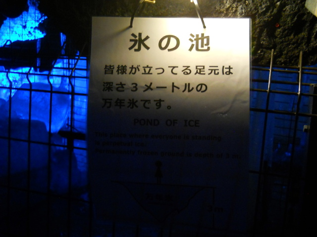 2018年4月30日から5月2日にかけて訪れた「甲斐のくに訪問記・その8」をお届けさせていただきます・・・冷涼な氷穴の中でも、一段とひんやり感じる底の方に向かって、低い天井の空間を腰を落として、ずりずりと這うように進んでゆくと・・・青くライトアップされた氷の塊りとつららが見えて参りました(*゜0゜) 「氷の池」の解説版には「皆様が立っている足元は深さ3メートルの万年氷です」と書かれてありました。・°・。その9へつづく・・・ 2018/08/27(月) アトリエ☆イボヤギ 木村大介 *この記事の前には2018/08/26(日)分の記事も投稿してございますので、合わせてご覧いただければ幸いです(^-'*)