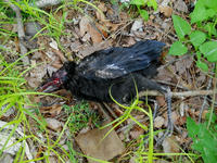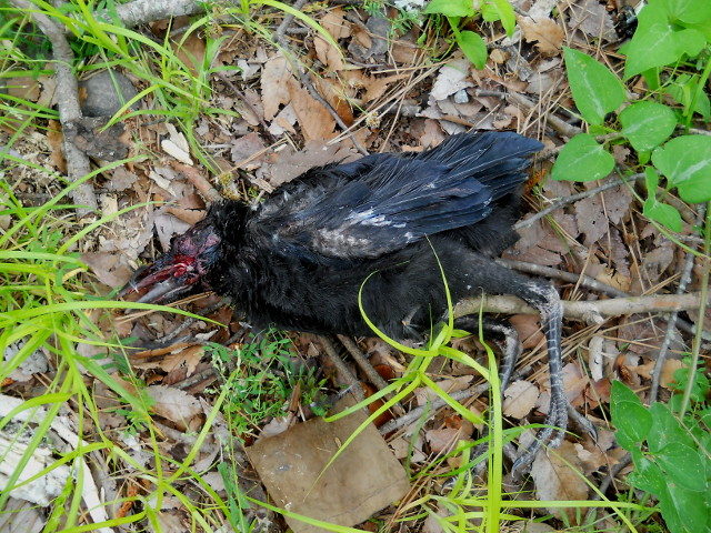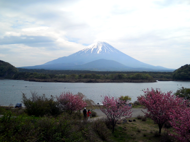 頭上を見上げると、鉄骨の梁の上に巣があって、親ツバメの尾羽だけが見えておりました(*^ - ^*)。・°・。翌朝、チェックアウト後にクルマを取りに行った友人が、樹の上からカラスのヒナが落ちて来た・・・(*゜0゜)と言うので、その場所に行くと。。大きな松の樹の上にある巣で、親ガラスが二羽、ガァガァと鳴きながら飛び周っておりました。宿の人によると、以前にもヒナが落ちてしまったことがあって、今回もダメかな。。と話しておりました。地面には写真のヒナの他にもう一羽、近くの草むらで息絶えているヒナの姿がありました・・・(-_-;)。・°・。宿を後にして、富士五湖の中で一番小さな精進湖へ参りました。湖の周りにあるビュースポットから富士山を眺めました。手前には八重桜の花も咲いていて、湖上ではカヤックなどの水上スポーツを楽しむ人たちで賑わっておりました。・°・。その12へつづく・・・ 2018/08/30(木) アトリエ☆イボヤギ 木村大介 *この記事の前には2018/08/29(水)分の記事も投稿してございますので、合わせてご覧いただければ幸いです(^-'*)
