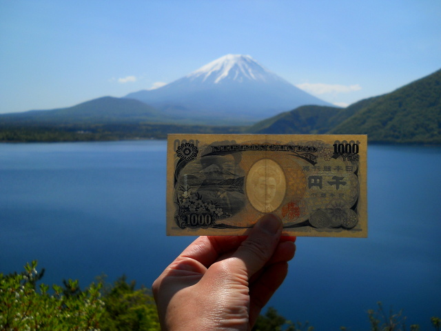 五月晴れの青空と、真っ青な本栖湖の水面に浮かぶように観える富士山は、壮麗でたいへん素晴らしい眺めでした。・°・。こちらのビュースポットから観た富士山は、現行の千円札の図案になっていることでも有名で、さっそく手持ちのお札を風景にかざして、見比べてみました(^^)。・°・。その7へつづく・・・ 2018/08/25(土) アトリエ☆イボヤギ 木村大介