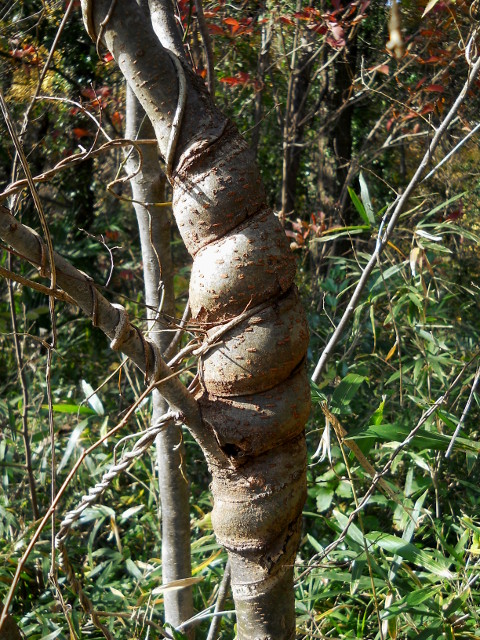 「師走の狭山丘陵自然観察記・その3」をお届けさせていただきます・・・真っ青な快晴の空のもと、陽射しを透かした色とりどりのモミジの葉が、カテドラルの天井を覆う美しいステンドグラスのように見えました。・°・。”武蔵野の道”の距離表示板も、落ち葉に埋もれかけいぇおりました。・°・。つる植物に巻き付かれた樹がその締め付け力によって、まるでダブルツイストパンみたいな形になっておりました(*゜0゜)。・°・。その4へつづく・・・アトリエ☆イボヤギ 木村大介2017年の春頃より多忙な状況が重なってしまい、ブログの更新が大幅に遅れた状態が続いておりますが、日付順に少しずつ更新をさせていただいておりますので、引き続きご高覧いただければ幸いに存じます・・・(*´-`) *尚、様々な訪問記の連載が続いておりますために、実際の日付と投稿の内容にもだいぶ時間の開きが生じてしまい、お見苦しい点も多々ございますが、何卒よろしくお願い申し上げます。。!