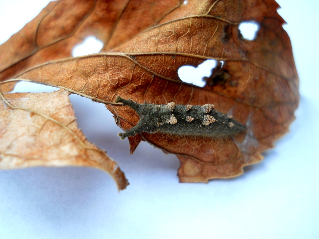 「師走の狭山丘陵自然観察記・その7」をお届けさせていただきます・・・生き物倶楽部の定例観察会は13時から始まりました。最初に観察したのは、エノキの落ち葉で越冬中のタテハチョウ科の幼虫たちでした。1枚目の画像はアカボシゴマダラ、2枚目はオオムラサキ、3枚目はゴマダラチョウの幼虫です。よく似ているそれぞれの幼虫たちの見分け方を教えていただきました。3枚目のゴマダラチョウ幼虫は、一見他の幼虫の特徴をしているように見えるのですが、例外的なタイプもあるそうです。・°・。その8へつづく・・・アトリエ☆イボヤギ 木村大介2017年の春頃より多忙な状況が重なってしまい、ブログの更新が大幅に遅れた状態が続いておりますが、日付順に少しずつ更新をさせていただいておりますので、引き続きご高覧いただければ幸いに存じます・・・(*´-`) *尚、様々な訪問記の連載が続いておりますために、実際の日付と投稿の内容にもだいぶ時間の開きが生じてしまい、お見苦しい点も多々ございますが、何卒よろしくお願い申し上げます。。!