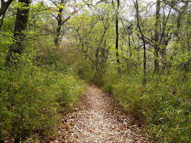 今年の4月1日(日)に訪れた都立狭山公園訪問記・その5をお届けさせていただきます・・・落ち葉の積もった林の中の小道は、樹々の萌黄色で明るい雰囲気に満ちておりました♪。・°・。丘の上に続くなだらかな坂道のふもとにあった案内サインに対して、階段の脇の傾斜地をなんとか利用できるように出来たらいいのになぁ。。と思いました。・°・。笹薮の近くの地面には、斑点模様のホトトギスが葉を拡げておりました。・°・。その6へつづく・・・2018/08/15(水) アトリエ☆イボヤギ 木村大介 *この記事の前には2018/08/14(火)分の記事も投稿してございますので、合わせてご覧いただければ幸いです(^-'*)