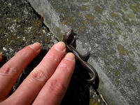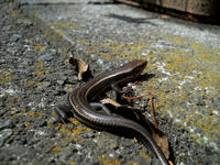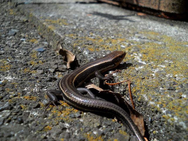 今年の3月24日(土)のお花見散策記・その5をお届けさせていただきます・・・雑木林と湧水池のある公園を後にして、線路を挟んだ反対側にある、樹木の種類の多い大きな公園へと向かいました。・°・。その道中の日当たりのよい階段で、アスファルトとコンクリートの隙間から身体を乗り出しているヒガシニホントカゲさんと遭遇いたしました。。(*゜0゜) 最初は日向ぼっこをしているのかな?と思いましたが、人に対する警戒心があまりになく、微動だにしなかったので、はたして生きているのかなぁ・・・?と、そっと指先で触れてみると。。面倒くさそうにのそのそと歩き出しました(*´-`)