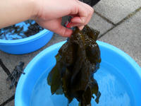 今年の2月11日(日)に東京都葛西臨海公園で開催されていた「西なぎさ 海苔すき体験&試食イベント」の体験記・その2をお届けさせていただきます・・・タライの中に入っていた採れたての生のワカメと、海苔の原料となる海藻を触ってみました。海苔の原料海藻はいくつか種類があるそうですが、置かれていたサンプルがなんという種類だったのかは、残念ながら失念してしまいました(*´-`)。。海苔用の海藻を指でつまんで持ち上げてみると、とても薄くてやわらかい感触がいたしました。・°・。さて、いよいよ海苔漉き体験にトライすることになり、まな板の上で飛行機包丁と呼ばれる、二枚の刃が平行に付いている特殊な包丁で、原料となる海藻を職人さんの手ほどきを受けながら、わたくしも懸命に刻んでみました(^-'*) まんべんなく効率よく刻むには、なかなかコツが要るようです。・°・。その3へつづく・・・2018/06/12(火) アトリエ☆イボヤギ 木村大介 *この記事の前には2018/06/11(月)分の記事も投稿してございますので、合わせてご覧いただければ幸いです(^-'*)