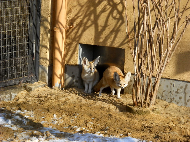 今年の1月23日(火)に訪れた、雪景色の井の頭自然文化園訪問記・その4をお届けさせていただきます・・・本園の中央にある大放飼場では、マナヅルさんとクロヅルさんが並んで羽繕いをしておりました。・°・。熱帯の鳥たちのいる温室では、クビワオオコウモリ(オリイオオコウモリ)さんが外の雪景色とは裏腹に、ポカポカな温室の中でぶら下がって微睡んでおりました(^^) フェネックさんたちは暖かい室内から屋外へと通じる場所で、見慣れない雪景色に戸惑うように?出ようか出まいか迷っているようにも見えました(*^ - ^*)。・°・。その5へつづく・・・2018/05/26(土) アトリエ☆イボヤギ 木村大介 *この記事の前には2018/5/25(金)分の記事も投稿してございますので、合わせてご覧いただければ幸いです(^-'*)