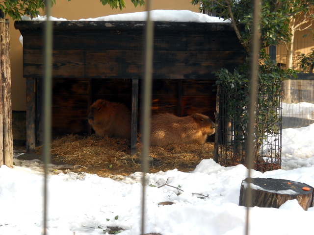 今年の1月23日(火)に訪れた、雪景色の井の頭自然文化園訪問記・その5をお届けさせていただきます・・・熱帯温室のよく陽の当たる場所で休んでいた、パラワンコクジャクさんの羽根色が一層美しく際立たって見えました。・°・。カピバラさんたちは小屋の中の干し草の上におとなしく座って、雪の上にはあまり足跡が見られませんでした。・°・。ヤギさんは雪の中でも元気そうで、何か食べるものはないかなぁ。。と探し歩いておりました(^^)。・°・。その6へつづく・・・2018/05/27(日) アトリエ☆イボヤギ 木村大介