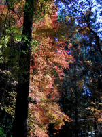 2017年12月2日(土)に訪れた、東京都あきる野市の金毘羅山散策記・その7をお届けさせていただきます・・・南沢あじさい山周辺の樹々からぶら下がっていた、サルオガセに触れてみると柔らかくしっとりとしておりました。・°・。近くにある東京都指定天然記念物「南沢の鳥の巣石灰岩産地」に向かう山道で振り返ると・・・陽を透かした紅葉が青い空によく映えておりました。・°・。*