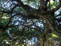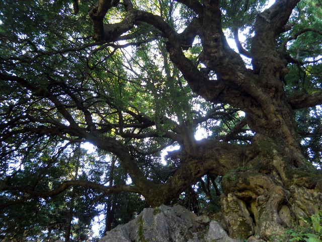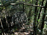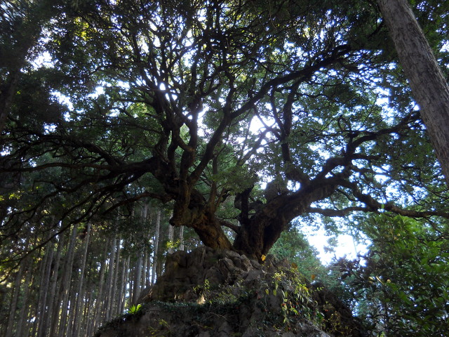 さらに林の奥に入ってから同じ方向を眺めると、影絵のような静かな美しさを感じました。・°・。「南沢の鳥の巣石灰岩産地」は険しい岩場をよじ登って見学いたしました。ジュラ紀後期のサンゴや層孔虫類の化石が含まれているそうです。・°・。そこからしばらく歩いてたどり着いたのは、あきる野市指定の天然記念物でもある「山抱きの大樫」でした。大きな岩の上にウラジロガシがそびえ立っていて、とても厳かな雰囲気を感じました。。。幹回りは約6.5メートル、高さは約20メートルあり、枝の広がりは東西南北ともに約27メートルはあるそうです(*゜0゜)。・°・。その8へつづく・・・2018/03/29(木) アトリエ☆イボヤギ 木村大介