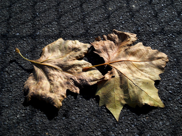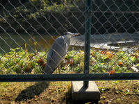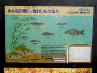 合流点の近くには大栗川に生息する魚たちを紹介するパネルがございました。・°・。川縁のフェンスの向こうに、妙に人慣れしたアオサギさんが一羽たたずんでおりました。。遊歩道にはプラタナスの乾いた枯れ葉が落ちておりました。・°・。*
