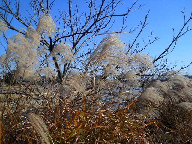 2017年12月3日(日)に参加した、多摩川中流域の野鳥観察記をお届けさせていただきます・・・この日は日本野鳥の会主催の観察会に参加しました。わたくしのコンデジではうまく撮れなかったので写真をご紹介できないのは残念ですが・・・真っ青な冬晴れのお天気のもとで、たくさんの冬鳥たちを観ることが出来ました(^^) 初めて観た鳥としては「ヒバリ、タヒバリ、イカルチドリ、ハイタカ、セグロカモメ」そして。。観察会のベテランの方々も口々に大変ラッキーだとおっしゃっていた、「ハヤブサ」もすぐ近くの河原に舞い降りて来て間近で観ることが出来ました(≧▽≦)  河原にはセンダンのうす黄色の実が青い空に映えておりました。・°・。ススキの穂も冷たい北風に揺れておりました。・°・。大栗川と多摩川の合流点でお弁当を食べて、本日観られた野鳥の種類の報告会が行われた後、自由解散となりました。・°・。*