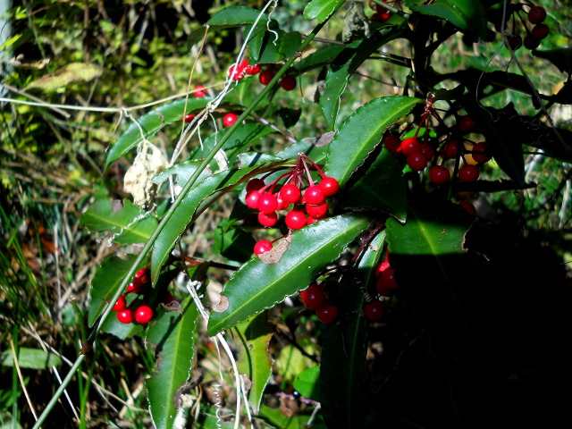 小道の脇には何かの種子が、たんぽぽの綿毛のように展開しておりました。・°・。マンリョウの実は、まぶしいくらいに鮮やかな紅色に照っておりました。・°・。針葉樹の間からこぼれた陽射しが、カエデの仲間の黄葉を明るく浮き立たせておりました。・°・。その3へつづく・・・2018/03/24(土) アトリエ☆イボヤギ 木村大介