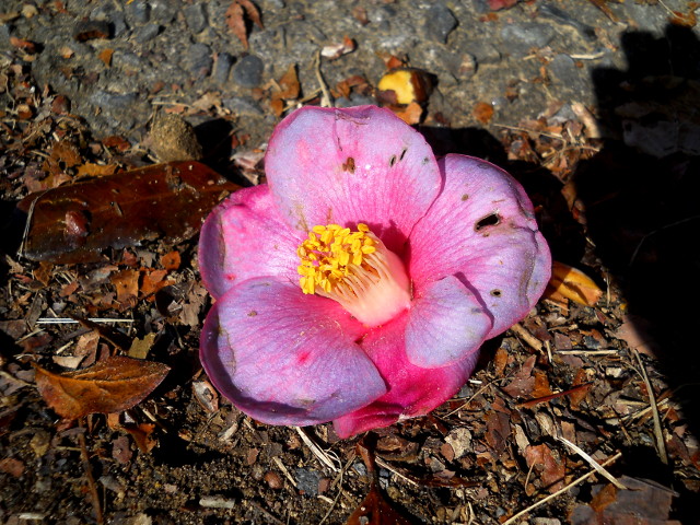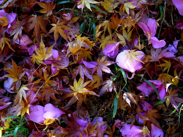 2017年12月2日(土)に訪れた、東京都あきる野市の金毘羅山散策記・その3をお届けさせていただきます・・・椿の花が地面に落ちておりました。少し色が褪せておりましたが、落ちてもなお美しく見える姿に風情を感じました。・°・。近くにはモミジの落ち葉といっしょに、椿か山茶花の花びらが混じり積もっていて、木陰に彩りを添えておりました。・°・。鮮やかなピンク色の山茶花も咲き乱れていて、青い空によく映えておりました。・°・。*