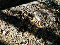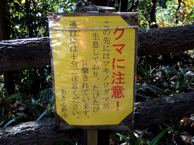 2017年12月2日(土)に訪れた、東京都あきる野市の金毘羅山散策記・その5をお届けさせていただきます・・・地面に細長い形をしたハチの巣を見つけました。。いったいどなたのものかな?とハチの種類を調べてみたのですが・・・よく分かりませんでした(*´-`)  木漏れ日の差す山の斜面に、フユイチゴがたくさんなっておりました(*゜0゜)スポットライトのような陽に照らされて、まるで森の宝石のようにも見えました。・°・。道中にツキノワグマへの注意を喚起する立札がございました(・・;)