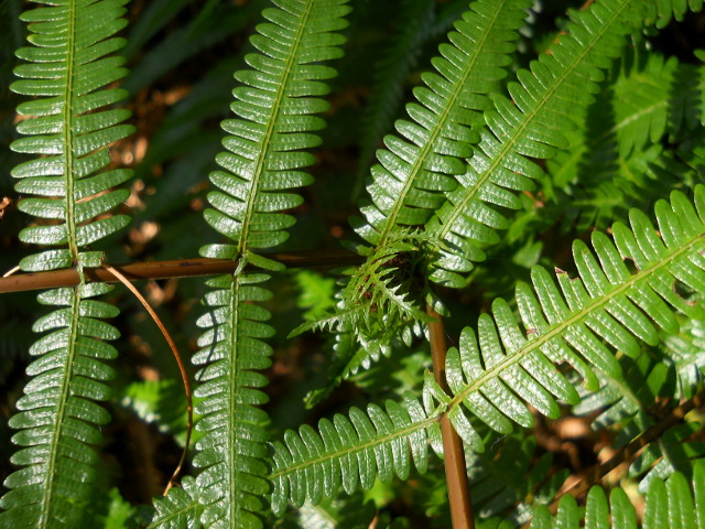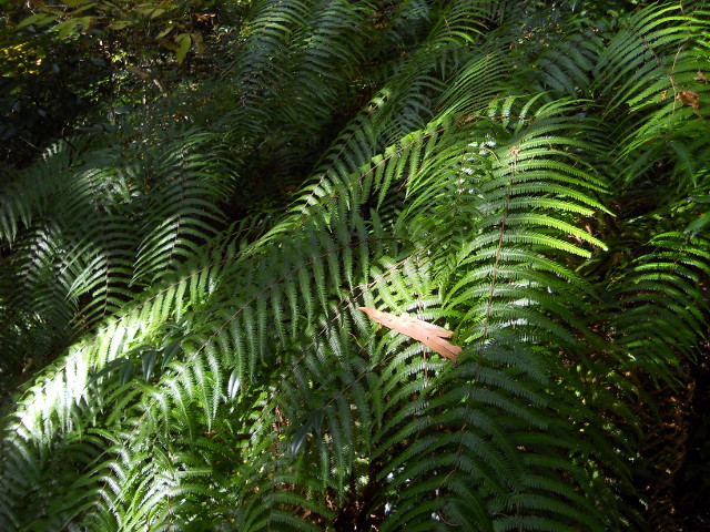 2017年12月2日(土)に訪れた、東京都あきる野市の金毘羅山散策記・その6をお届けさせていただきます・・・南沢あじさい山方面に向かって森の道を下っていると、とても大きな針葉樹に出会いました。種類は分かりませんが、モミの木のような雰囲気でした。・°・。林床の斜面に長く大きな葉のシダ植物が繁茂していて、近づいて観ると。。葉の付け根に面白い形の小さな葉が付いておりました。・°・。*