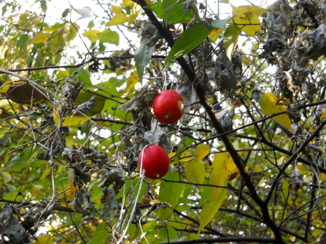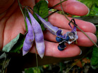 観る角度によっても表情が違って見えて楽しめました♪  枡形山からお隣の飯室山へ歩いて行くと、 遊歩道の階段沿いに美しい藤色をしたノササゲの実がたくさん成っておりました。・°・。中には既に鞘がはじけて、熟した藍色の実が露出しているものもございました。・°・。『晩秋の生田緑地散策記・完』・・・2018/03/21(水) アトリエ☆イボヤギ 木村大介
