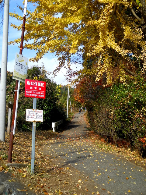 そのバス営業所の建物の隣には、夜勤者の為のものでしょうか?布団が天日干しされているのが見えて、なんだかほっこりした気持ちになりました(^-'*)  あきる野市の鮎の図柄のマンホール蓋のカラーバージョンも撮れました。・°・。今回の主目的地の金毘羅山は標高468メートルで、紅葉のまだ残る初冬の景色を楽しみながら登り始めました。登山口に立てられていた「鳥獣保護区」の赤い看板に背景のイチョウの黄葉、そして青い空にステキなコントラストを感じました。・°・。その2へつづく・・・2018/03/23(金) アトリエ☆イボヤギ 木村大介