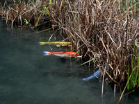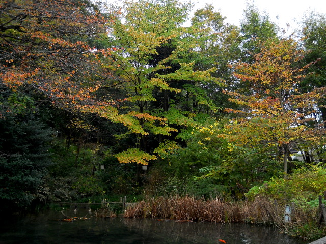 小高い雑木林の下にある小さな池の水面にも、彩り豊かな落ち葉が浮かんでおりました。・°・。池に住んでいる錦鯉たちは、小川の流れ込んでいる岸辺に集まっておりました。・°・。池の近くに、目にも鮮やかな赤い実をたくさんつけている樹があったので調べてみたのですが、なんの樹なのかよく分かりませんでした・・・ナナカマドかな?とも思ったのですが少し違うような。。?