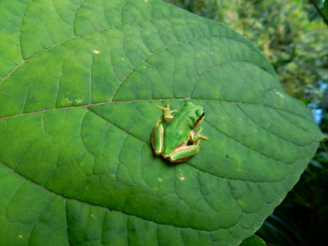 大きな葉の上には、ちょこんとのったアマガエルさんがおりました♪ 昨日ご紹介したリシアの繁茂している溜め池では、ヌマエビさんを捕まえることが出来ました。