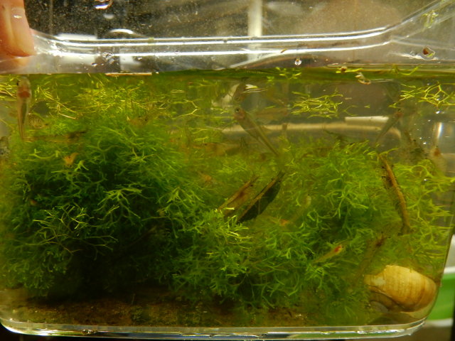 また、下流側にある水田の用水路付近では、メダカとカワムツさんの幼魚も採集いたしました。リシアといっしょにプラケースに入れて持ち帰り、自宅の30センチ水槽に移しました。・°・。