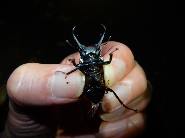 更に林の奥の方へ進んで参りますと、樹液のよく出ている大きなクヌギの樹の上の方に、オオクワガタさんを見つけました(*゜0゜) 身体には白いカビのようなものが付いて見えたので、もしかしたら死んでいるのかな?と思いましたが、間もなく逃げ去ってしまったので、まだ元気な個体だったのだと分かりました。それにしても郊外の雑木林で二度目の遭遇となったオオクワガタの存在に驚きを覚えました。。別の樹にはコクワガタさんのオスも見つけましたが、ライトを当てると地面に落ちて、素早く逃げ出しました。摘まみ上げてみると、元気よく脚をバタつかせて、撮影後にリリースするとあっという夜の闇の中へと消えてゆかれました。・°・。その2へつづく・・・2018/01/12(金) アトリエ☆イボヤギ 木村大介  アトリエ☆イボヤギ公式Twitter:https://twitter.com/atelieriboyagi1