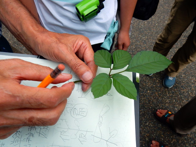2017/08/26(土)に訪れた葛西臨海水族園と鳥類園の「植物”感”察会」リポート・その8をお届けさせていただきます・・・一枚目の写真はヤブガラシの葉の付き方を説明している先生です。この日、ヤブガラシの花の蜜がとっても甘いことを、先生に言われ実際に舐めてみて、大変感動いたしました(*゜0゜) どうりでたくさんの虫たちの人気レストランと化している訳だと、納得いたしました(o^-^o)  あたりにたくさん生えているツユクサの花を分解して、その構造を解説してくださいました。取り出した種はごつごつした質感で、まるで小さな生き物の化石のようにも見えました。・°・。*