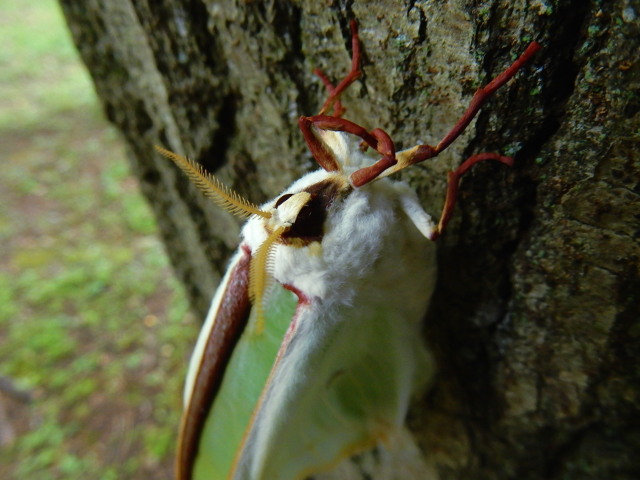 さて、残暑の雑木林へ参りますと、木陰は幾分暑さを和らげてくれました。・°・。道端で、途中で二又に分かれたエノコログサの穂を見つけました(*゜0゜)  コナラの幹には、まだ羽化して間もない?オオミズアオさんが留まっておりました。よく見ると翅の一部が完全に拡がりきれておらず、飛び立てない様子でした。。もしかしたら羽化に失敗してしまったのかな・・・?と思いました。。(*´-`) その2へつづく 2018/01/06(土) アトリエ☆イボヤギ 木村大介  アトリエ☆イボヤギ公式Twitter:https://twitter.com/atelieriboyagi1