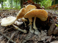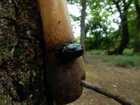 2017年8月27日に行った、近所にある小高い雑木林の自然観察記・その2をお届けさせていただきます・・・落ち葉の積もった地面に点在する朽ち木の周りには、大きな傘を開いたキノコがたくさん生えておりました。・°・。誰かが仕掛けたバナナトラップには、クロカナブンさんが留まっておりました。黒光りするボディには周囲の景色が映り込んでおりました。・°・。*