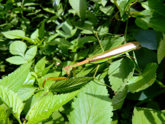 2017/08/14(月)と19(土)に訪れた、盛夏の雑木林散策・その8をお届けさせていただきます・・・小高い丘の雑木林を下りて、湧水池に参りました。・°・。池の桟橋遊歩道の脇に、大きく立派に育ったオオカマキリさんがこちらに視線を向けました(・・;)  足元にはキツネノマゴの花がたくさん咲いていて、イチモンジセセリさんやヤマトシジミさんたちが訪れておりました。・°・。*