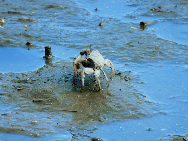 力強そうなハサミが立派なアシハラガニさんたちも干潟でよく見られました。・°・。ヤマトオサガニさんも引き潮の合間の餌探しに余念がありません(^^) 観察会を終えて、海側へ歩いてゆきました。下の池から海へと続く水門の上から鳥類園側を眺めると、山あいの峡谷のようにも見えました。・°・。その9へつづく*この記事の前には12/13(水)分の記事も投稿してございますので、あわせてご覧いただければ幸いです(^-'*)・・・2017/12/14(木) アトリエ☆イボヤギ 木村大介  アトリエ☆イボヤギ公式Twitter:https://twitter.com/atelieriboyagi1