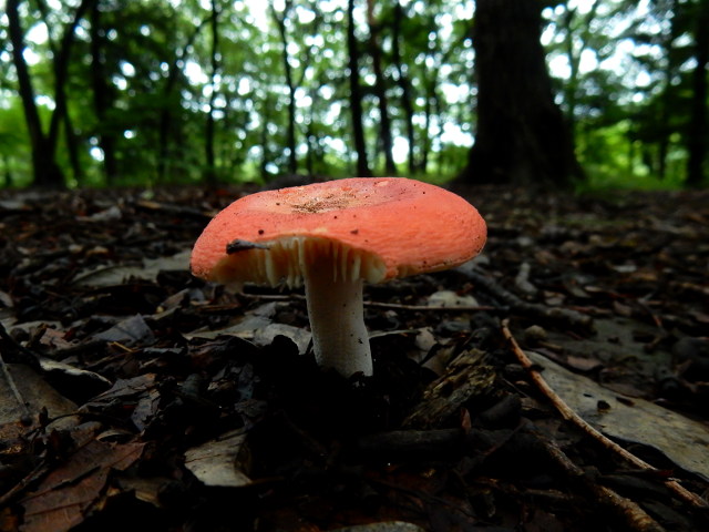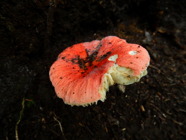2017/08/14(月)に訪れた、盛夏の雑木林散策・その2をお届けさせていただきます・・・薄暗い林床で、きれいな薄紅色をしたキノコがよく目立っておりました。同じキノコをいくつか見かけたのですが、どれも傘の一部が齧られた?ように欠けておりました。・°・。ちょっと硬そうなキノコは、粉砂糖で縁取った洋菓子のようにも見えました(^^)